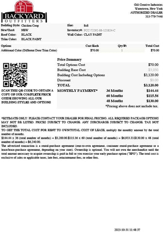 clay paint w/ black trim / Treated floor w/ black steel roof - $3,120.00 USD